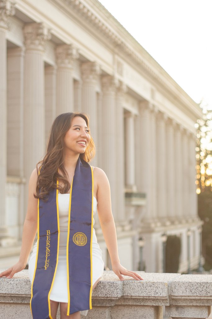 If you have the option to get a colored stole or white stole, I recommend a colored stole to really let that POP and your dress supplement that. I know not everyone loves wearing white, which is why the type of dress and fit is so important (which I’ll be going over below). After white, I love black, nude, and other neutral colors. I feel like the more your stole and your face can stand out the better. Yes, you could match your stole or your school colors with your dress, but sometimes I feel like your stole and dress gets mushed together visually.